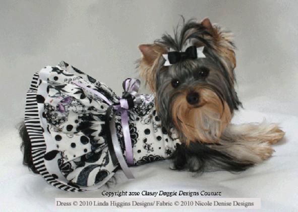 Doggie Dresses By Linda Higgins made this adorable dress & harness called "It's Magic"! Check out their site where you can purchase it and see their other precious dog dresses.