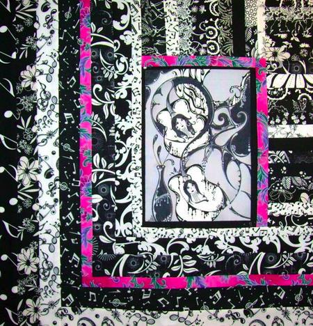 The task was to make a quilt block using one rectangle from the black & white Face The Music panel fabric. We couldn't believe the extraordinary creativity out there! Each entry is beautiful. The quilt blocks were assembled into one big quilt and donated to charity efforts in Haiti. Thank you to Ruby Street and everyone who participated!