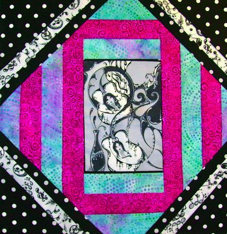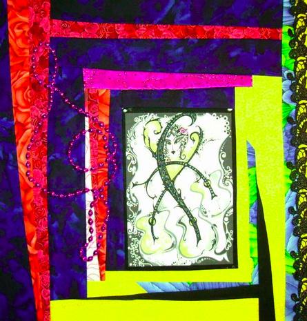 While Nicole didn't design this collection with the Margi Gras or Andrea's art in mind, (she drew much of it during college nearly 10 years before it was made into fabric), Andrea's work might have been an indirect reason why this fabric was chosen for the contest, and that deserves to be acknowledged.
